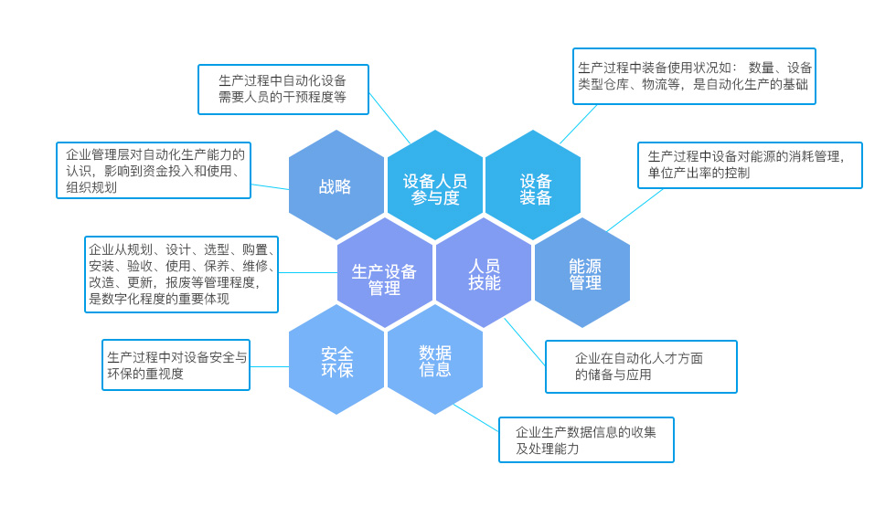 成熟阶段:企业内生产系统、管理系统以及其他支撑系统已完成全面集成,实现了工厂级的数字化,并开始对人、装备、产品、环境所采集到的数据以及生产过程中所形成的数据进行分析,通过知识库、专家库、云计算等优化生产工艺和业务流程,能够实现了柔性生产到智能制造的转变。